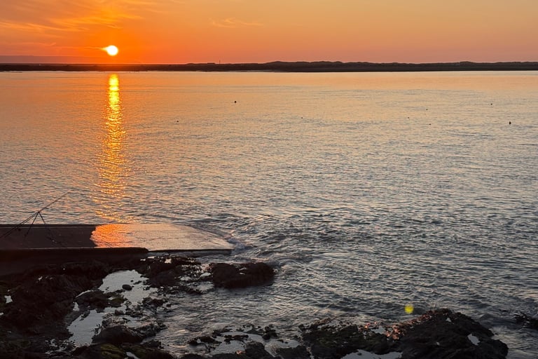Its just a short walk from the lifeboat slipway where you can go foiling or swim at hightide or rockpool at low water!